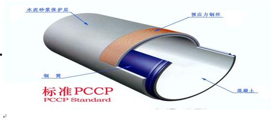 PCCP全称预应力钢筒混凝土管,是由钢筒和预应力钢丝、混凝土构成的复合管材。这种管材是在带钢筒的混凝土管芯外,运用预应力技术环向缠绕预应力钢丝,最后在管外部施喷水泥砂浆保护层而制成的管材。PCCP有两种形式,一种是埋置式预应力钢筒混凝土管(PCCP-E),是将薄钢筒嵌置于内外模之间,立式浇注混凝土,采用振动成形,经养护后在混凝土管芯外缠预应力钢丝,最后喷制水泥砂浆保护层,主要用于1.4米以上的中大口径管道。另一种是内衬式预应力钢筒混凝土管(PCCP-L),是在薄钢筒内浇注混凝土,采用离心或其他方式成形,经养护后在钢筒外表面缠预应力钢丝,再喷制水泥砂浆保护层,主要用于1.4米口径以下的管道。